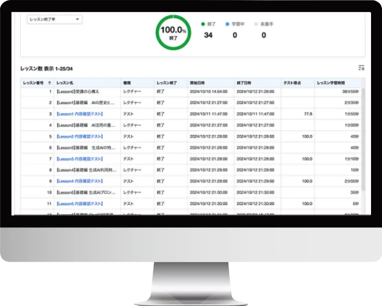 学習状況が一目でわかる学習管理システム(LMS)を搭載しています。