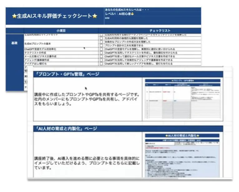 専用のスキルアップシート・チェックシートも併せて、学習者・管理者ともに習熟度を”見える化”!
